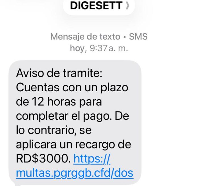 Santo Domingo, República Dominicana.- La Dirección General de Seguridad de Tránsito y Transporte Terrestre (Digesett), alertó a la ciudadanía sobre la reaparición de mensajes de texto fraudulentos que utilizan el nombre de la institución para engañar a conductores.
