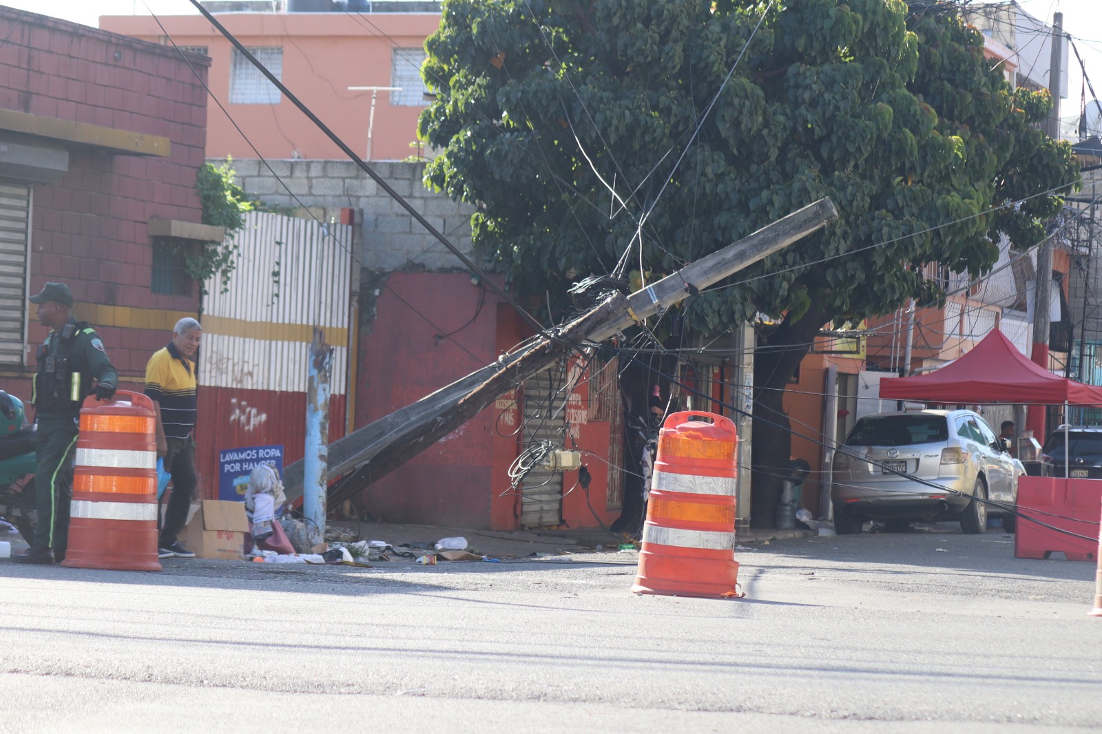 Santo Domingo, República Dominicana.- Un poste del tendido eléctrico colapsó la mañana de este lunes en la calle Mutualismo (10), casi esquina Avenida Padre Castellanos, en el sector 27 de Febrero del Distrito Nacional, generado la interrupción del tránsito en la zona y la movilización de varias instituciones.
